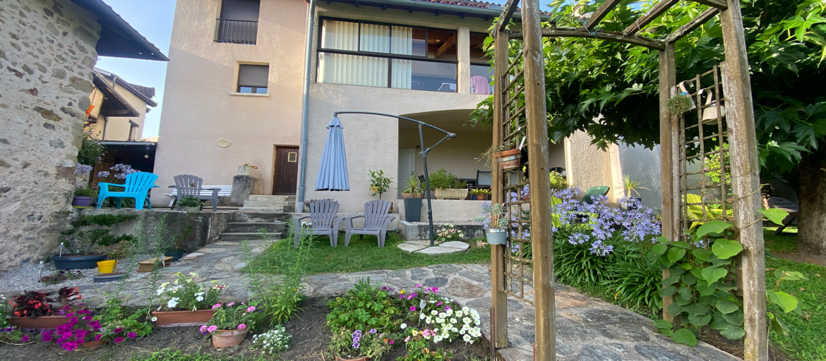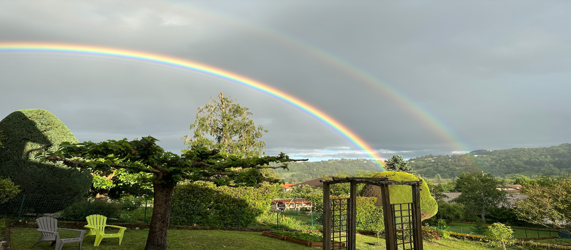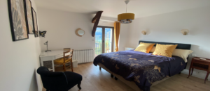 Arrivé en haut du village, avant la place de l’église, prendre à gauche, nous sommes situés à 50 m à droite de la halte repos Pèlerins.